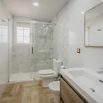 The holiday home comes with a bathroom with a roll-in shower. There are a hair dryer and towels for guests' comfort.